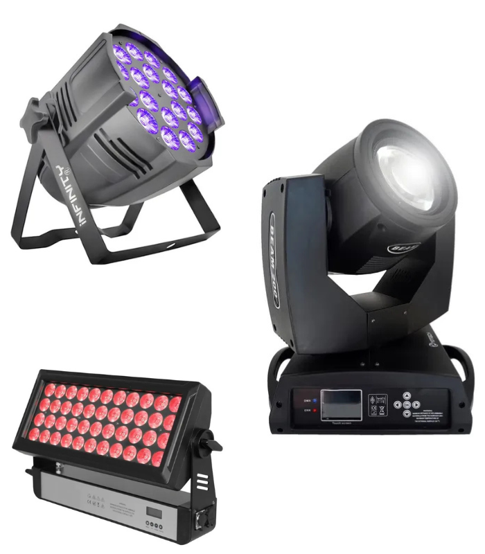 Trabalhamos com refletores LED, iluminação cênica, spots direcionais e controladores DMX, ideais para valorizar a identidade visual do evento, destacar palcos, painéis e estandes, além de criar ambientes sofisticados e bem iluminados, independentemente do porte do espaço.